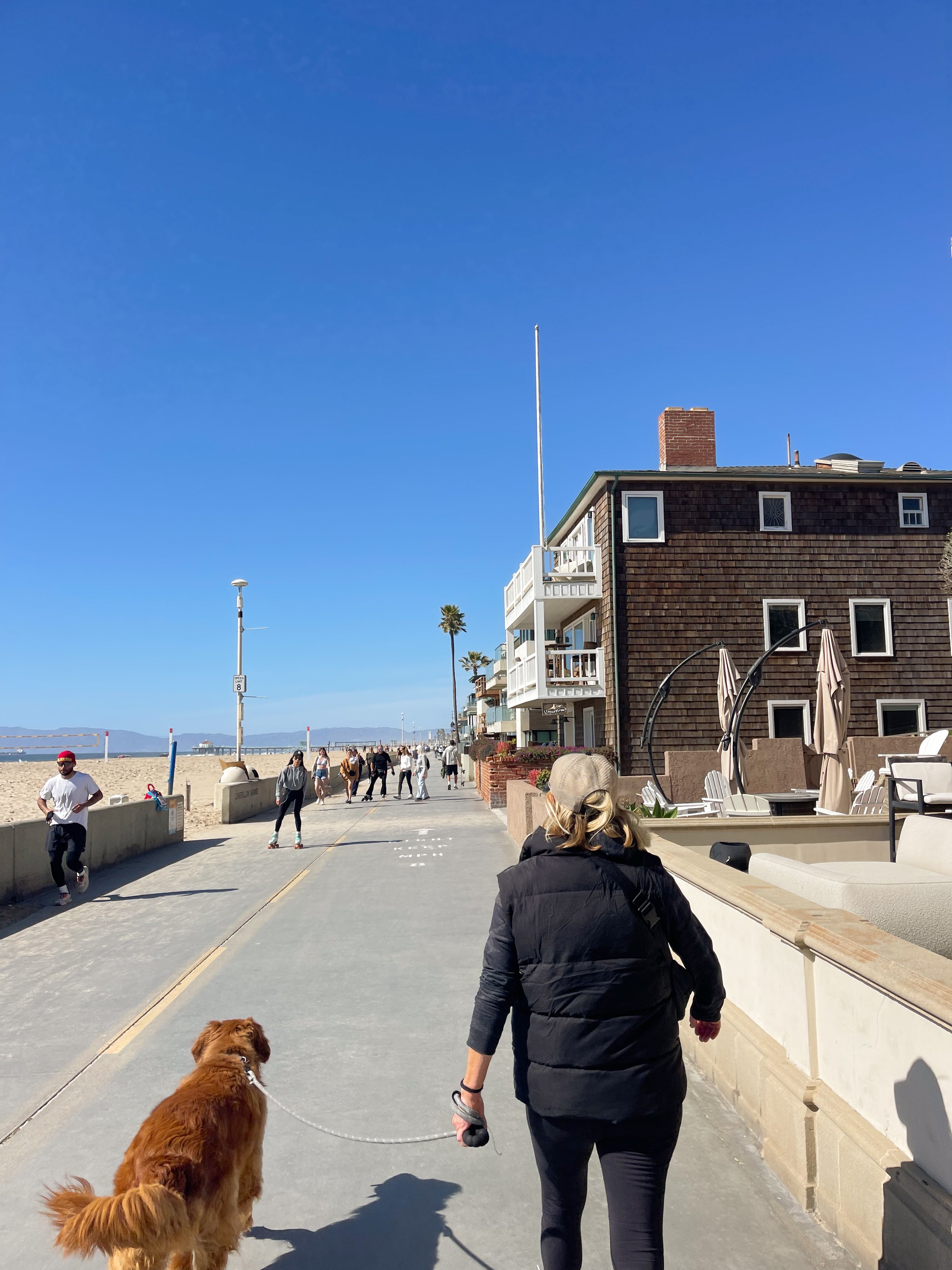 The next day, we joined my parents for a walk over to Hermosa Beach to catch some basketball games and grab lunch. We took the "Strand," a 22-mile-long bike path that runs along the water, connecting beaches from Pacific Palisades all the way to Torrance Beach. And of course, I have to introduce Rosie, our 5-year-old golden retriever, who’s truly living the best dog life!